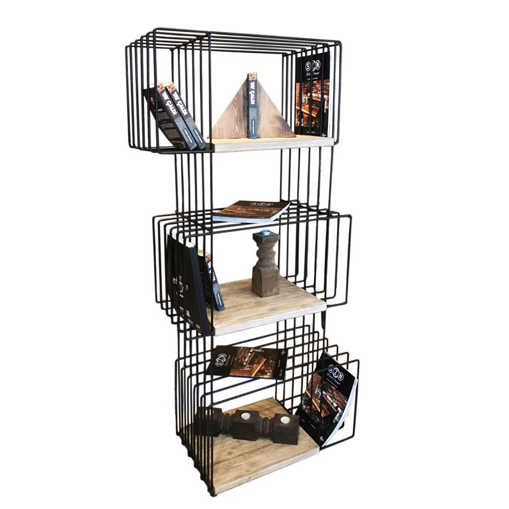 15570 - SZN Wood Kitaplık Tel -- Siyah 85 x 35 x 150 cm 3 Raflı --
