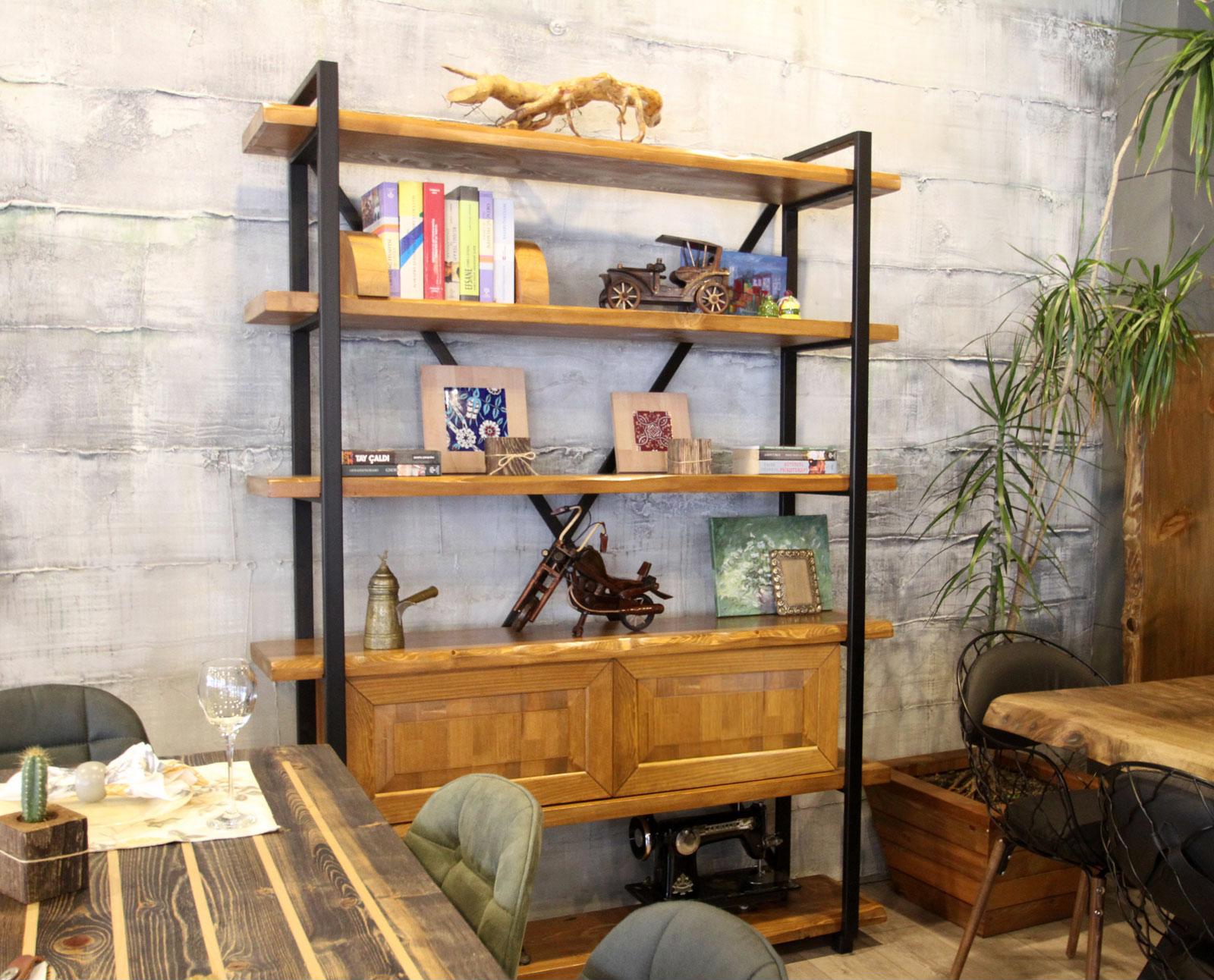 SZN Wood Kitaplık Gamboz Ladin -- SZN-51 150 x 34 x 200 cm 6 Raflı 2 Çekmece